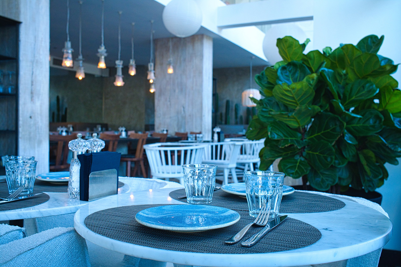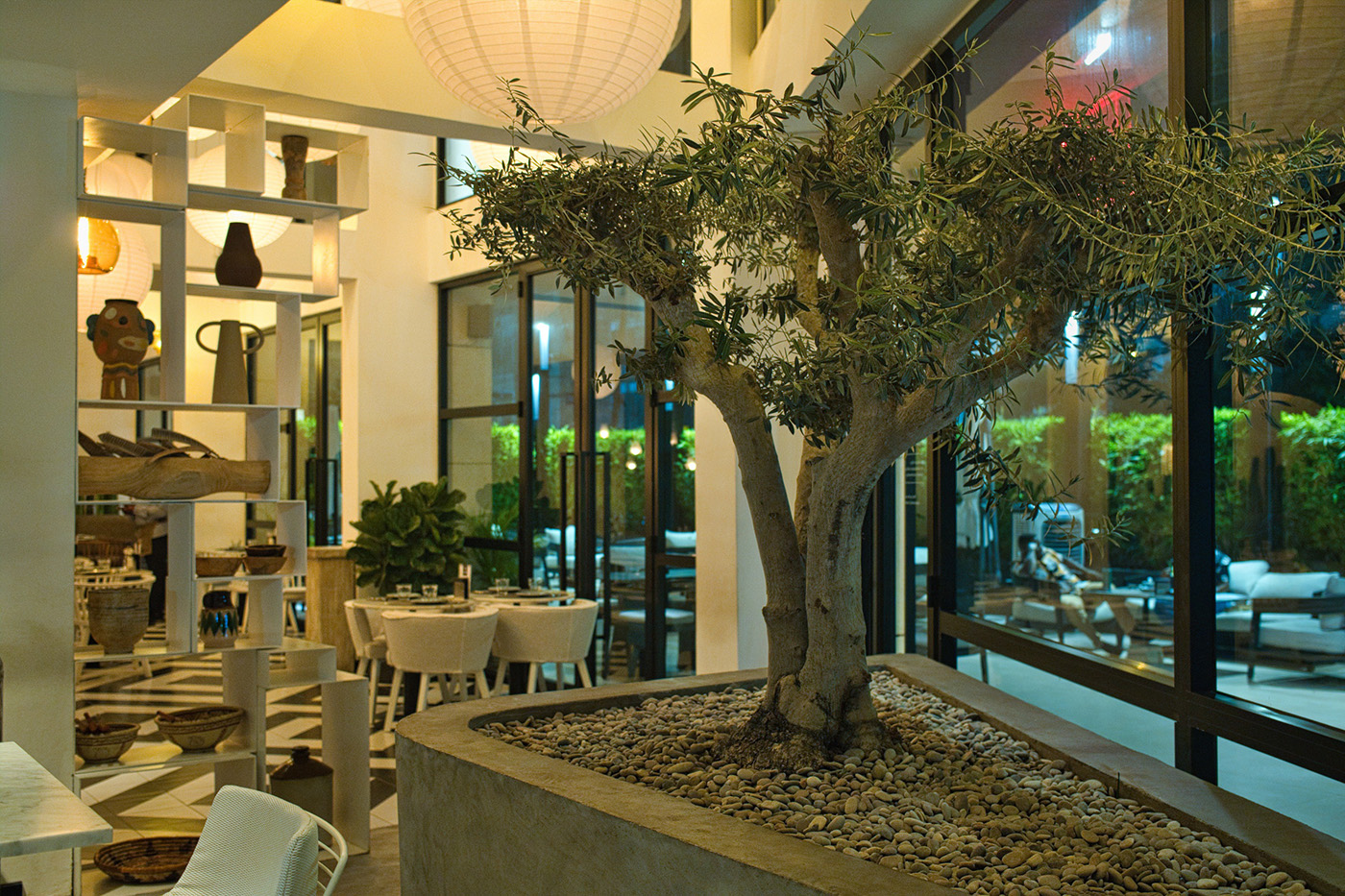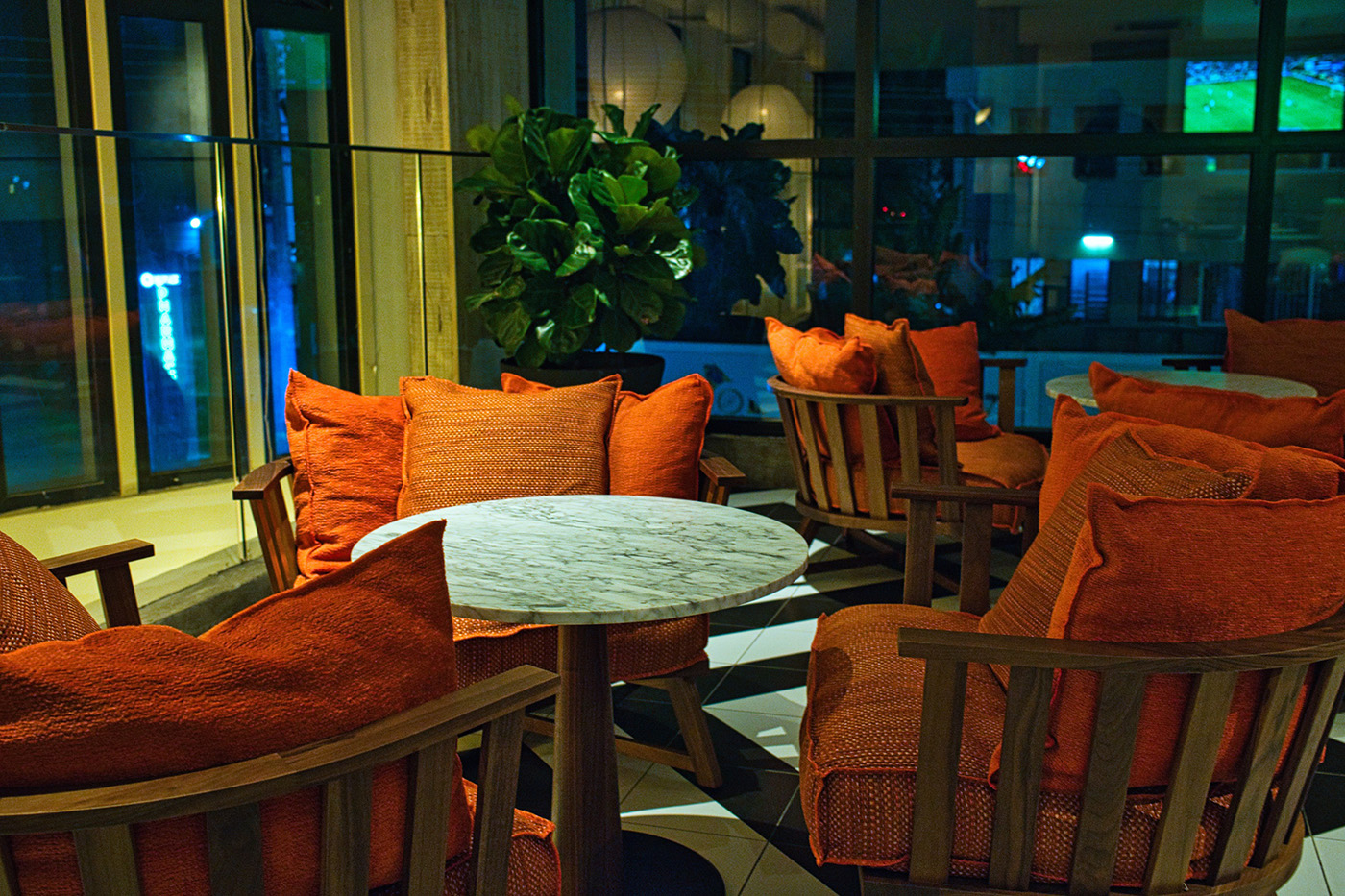 The double height space features dramatic “feather-ball” lighting, specially-commissioned artworks by local sculptors including Ghana’s acclaimed Nana Anoff, a wood-fired pizza-oven in a real, converted food-truck, relaxed bar-top dining options and an uber-stylish, circular private dining space.
